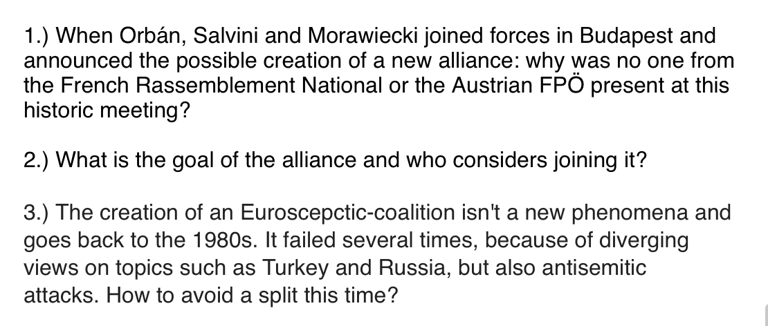 Tschinderle's questions, which the report describes as "judgments and allegations full of preconceived prejudices," dealt with last week's meeting in Budapest between Orbán, former Italian interior minister Matteo Salvini and Polish Prime Minister Mateusz Morawiecki and their efforts to create a new right-wing force on the European level.